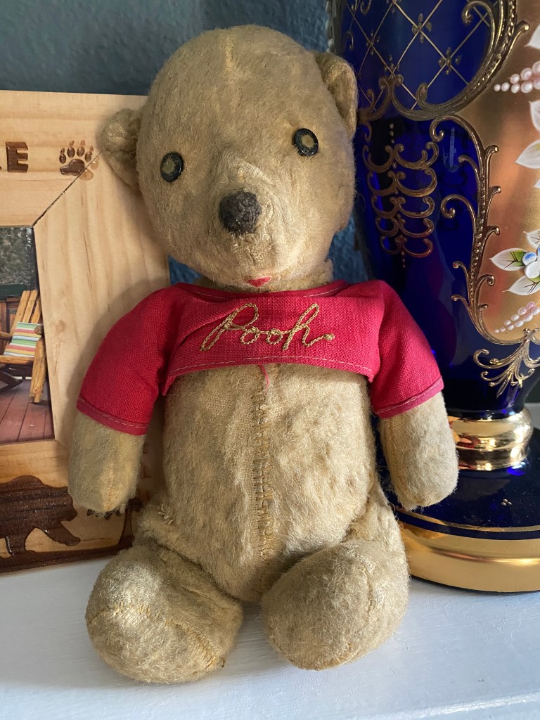 Pooh, who had been sitting in darkness for decades, was now looking at me. His face, the same as it ever was, fast-forwarded me back in time and brought immediate joy and love as I always had for this silly-ol’-bear.