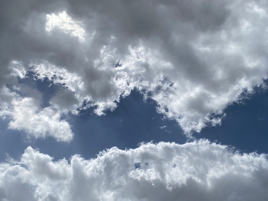 I shot quite a few pics today of very interesting Sky. There are wisps of vapor the edges of these clouds, and even within the clouds themselves. Look closely. I found it very cell structure-like.